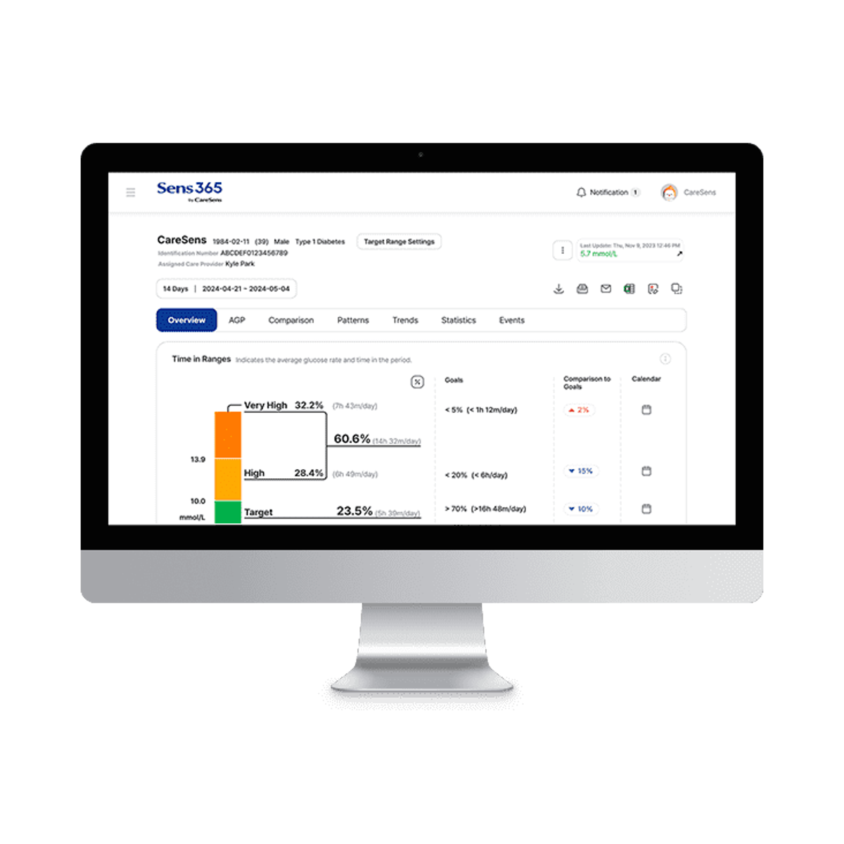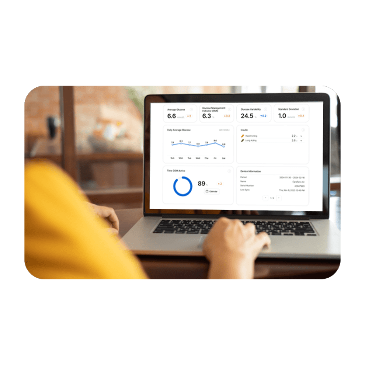 The dashboard provides an at-a-glance view of the key metrics in your glucose management.